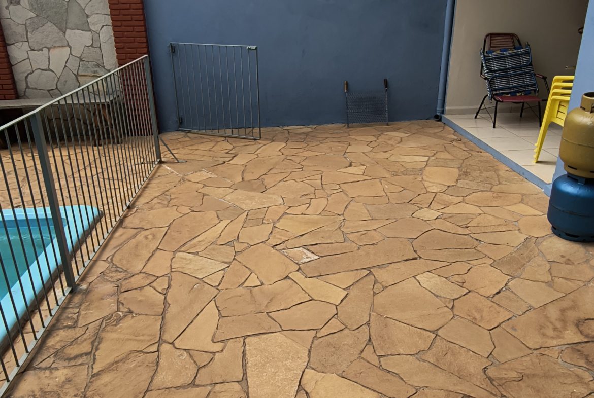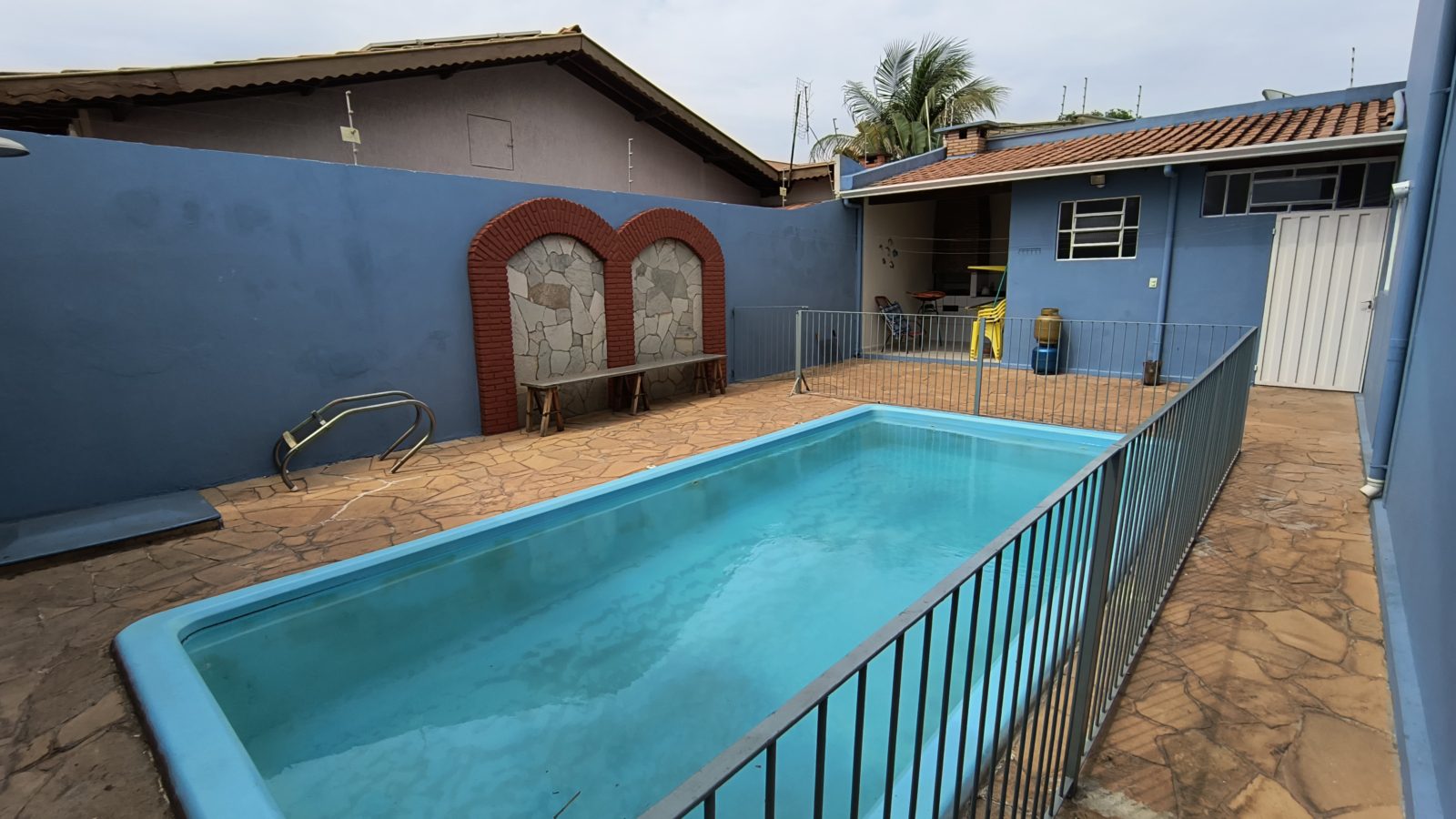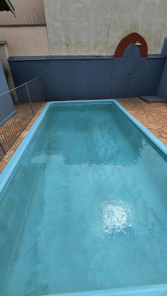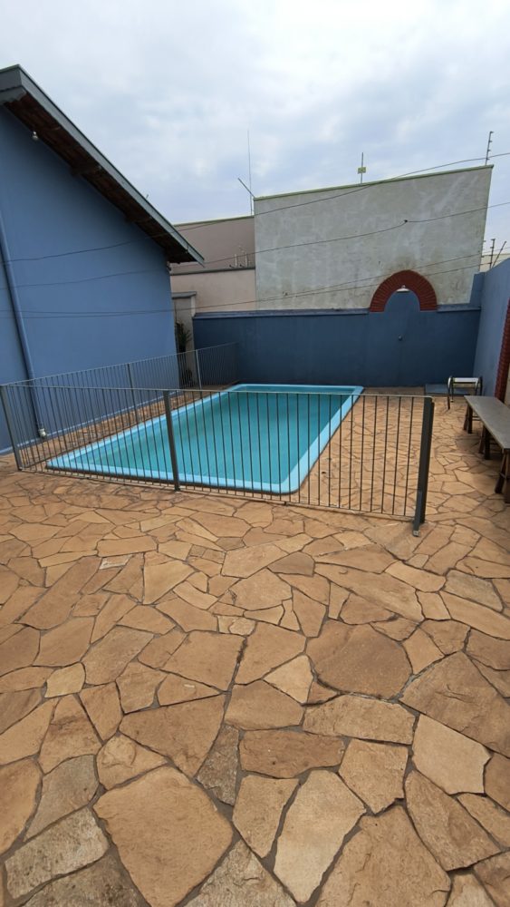 Área de lazer completa: piscina (cercada) e churrasqueira